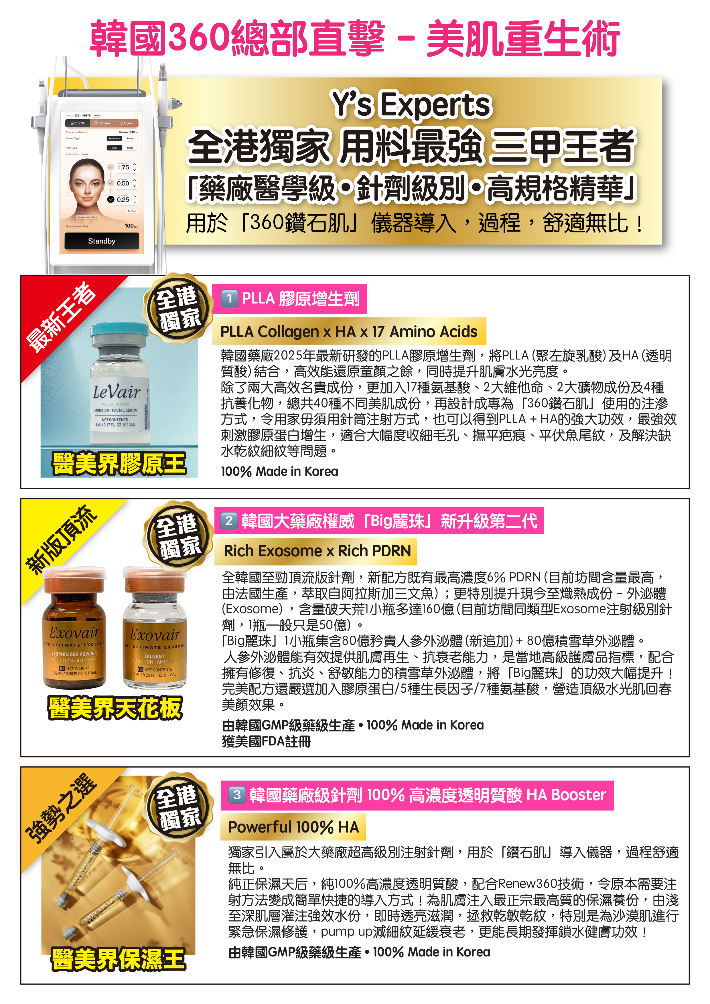 Y's Experts全港獨家•3大「藥廠醫學級•針劑級別•高規格精華」