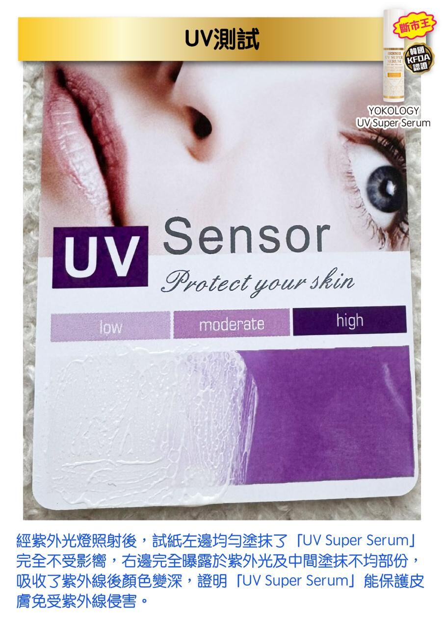 YOKOLOGY繼Magic Collagen「新‧極限超膠原」系列後,再度與韓國科研團隊合作研發「UV Super Serum」,團隊由韓國皮膚科博士暨前醫學教授帶領,憑藉二十多年豐富專業知識及經驗,先後與取得cGMP、KFDA及多項ISO國際認證的韓國大型工廠合作,為不同世界知名品牌研創新產品。「UV Super Serum」結合尖端技術及專業護膚配方,為防曬品訂立全新定義。