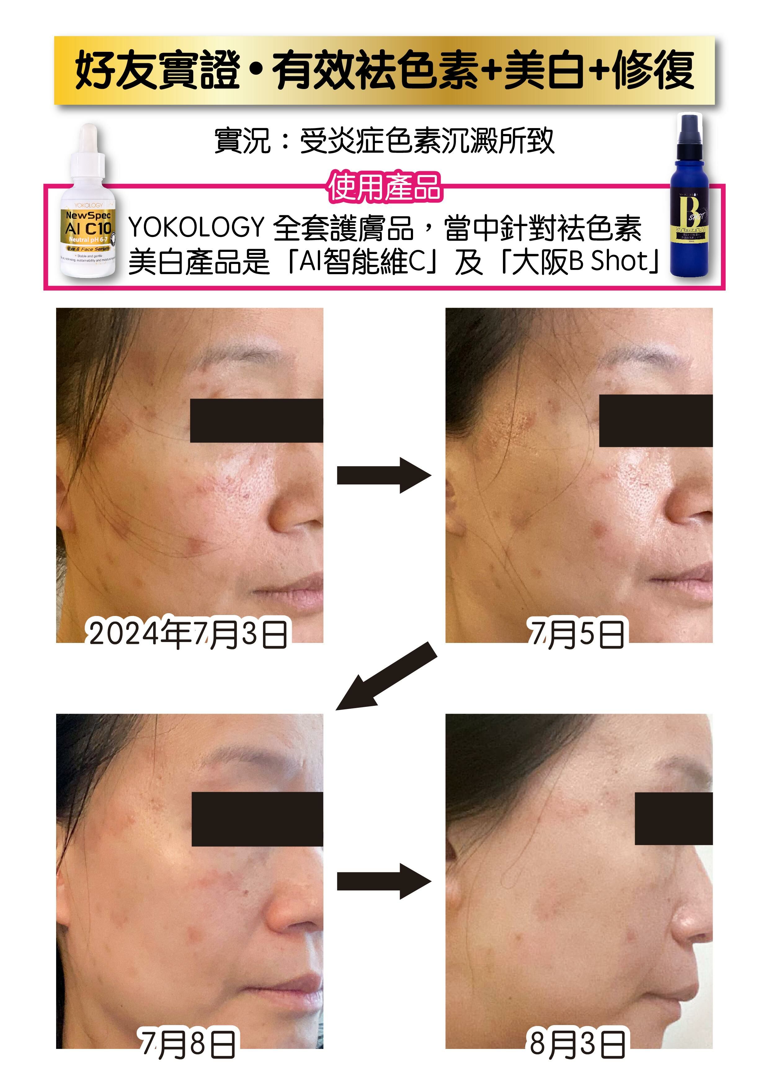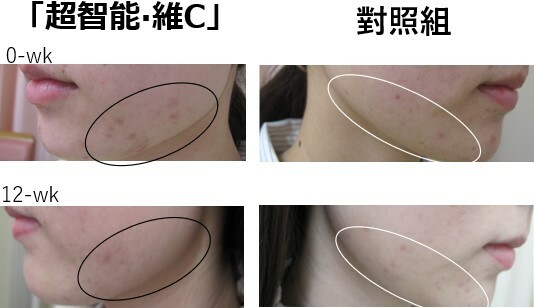 日本明和醫院痤瘡中心臨床實證,連續使用「超智能‧維C」12星期,炎症後引發的色素沉著及炎症後紅斑均有明顯改善,暗瘡印顯著減淡,整體膚色顯著白淨提亮!
