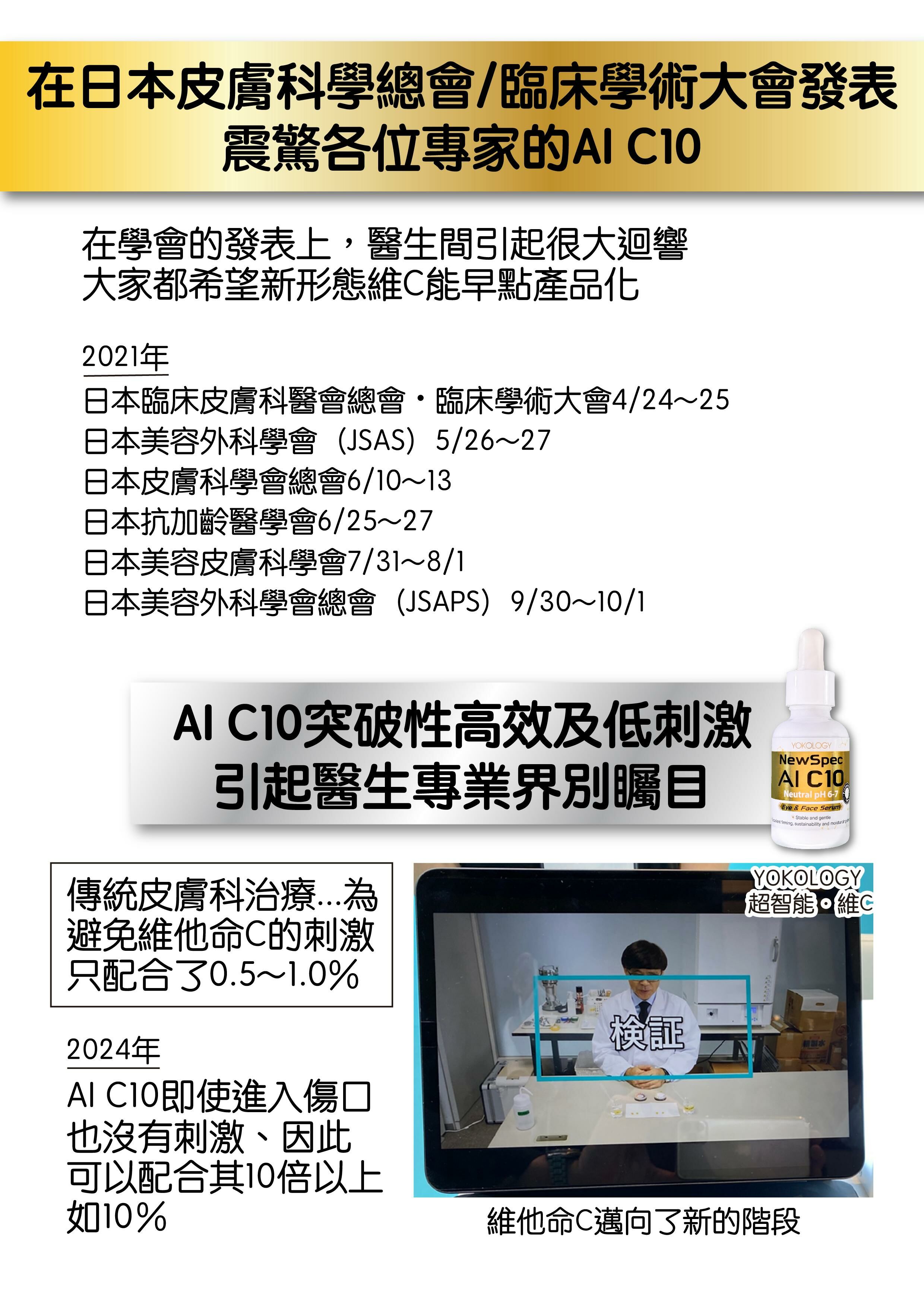 YOKOLOGY繼突破性的AI C10「超智能‧維C」面眼頸精華液後,再度聯同日本95位皮膚科醫生專家成功研創出突破傳統、顛覆市場的未來型超智能維C精華──AI C35「超智能‧高濃度醫學級維C」高效重點祛斑祛紋逆齡精華,成為破天荒新世代全球最高濃度。