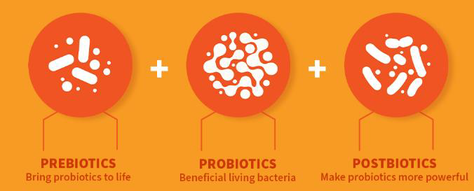 •益生元是益生菌的食物/營養素,後生元則是益生菌進食益生元後衍生的代謝產物。