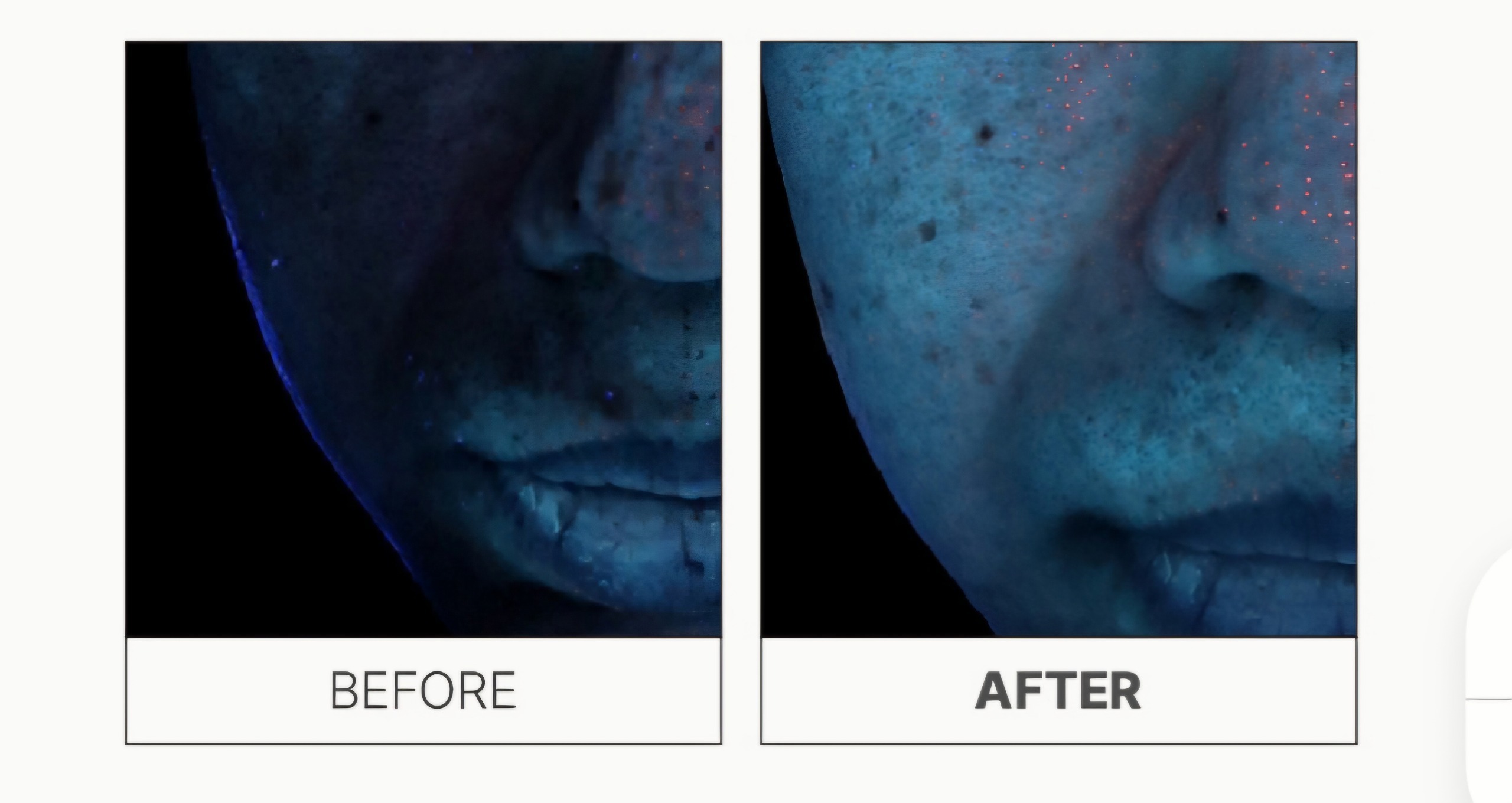 塗抹防曬精華後,變黑色的位置,代表紫外線不能進入,有效保護皮膚。